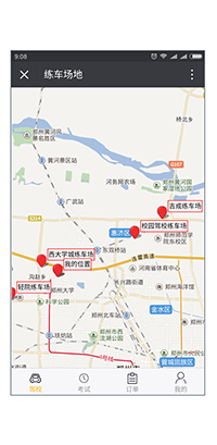 在地图上,选择适合自己的练车场地,点击进入(场地选择一般按照就近原则,即选择距离自己最近的场地)