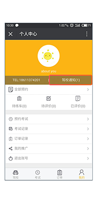 在个人中心里查看驾校通知