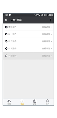 登录微信公众号学员入口,打开“考试”界面,点击科目预约选项